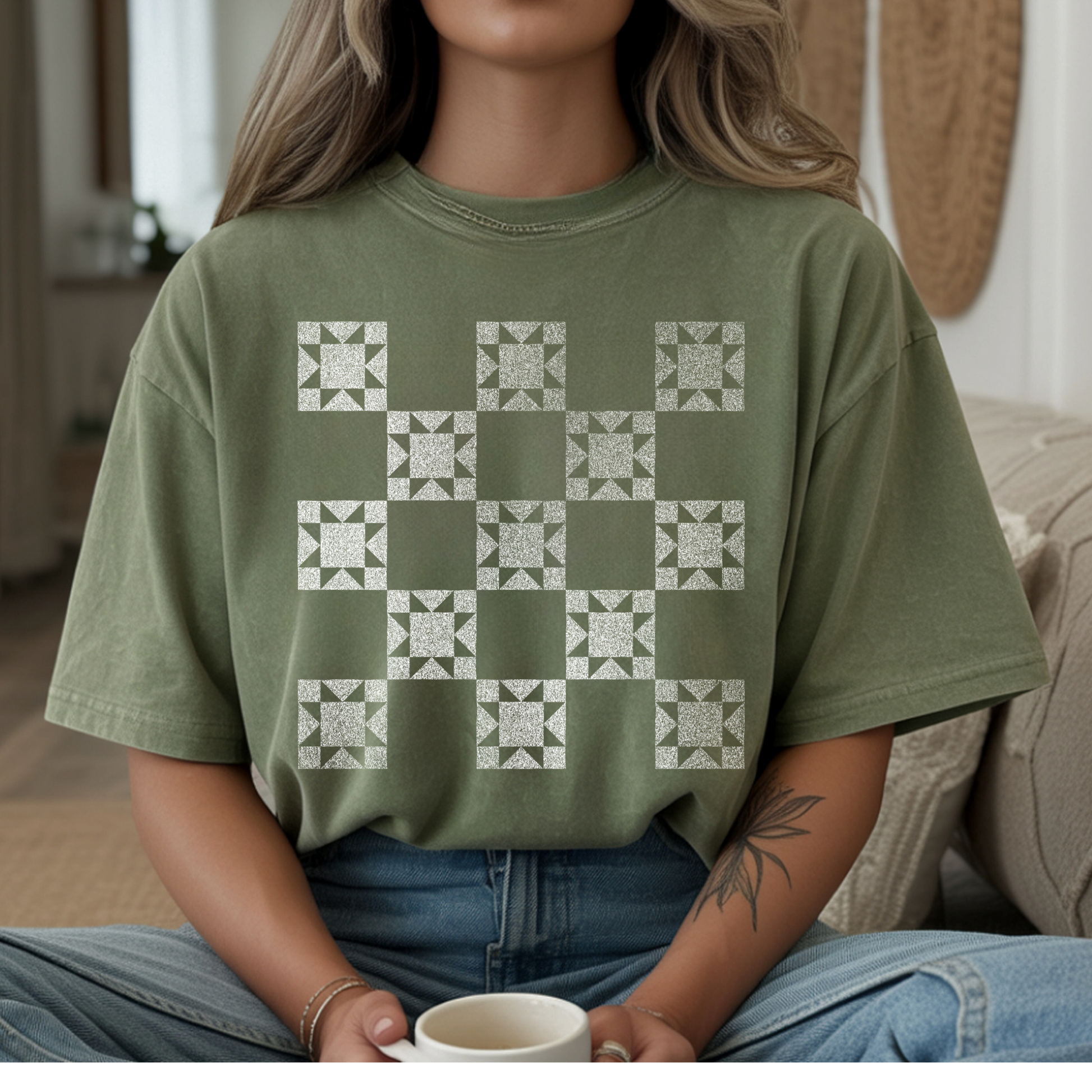 Quilt Block Tshirt or Long sleeve